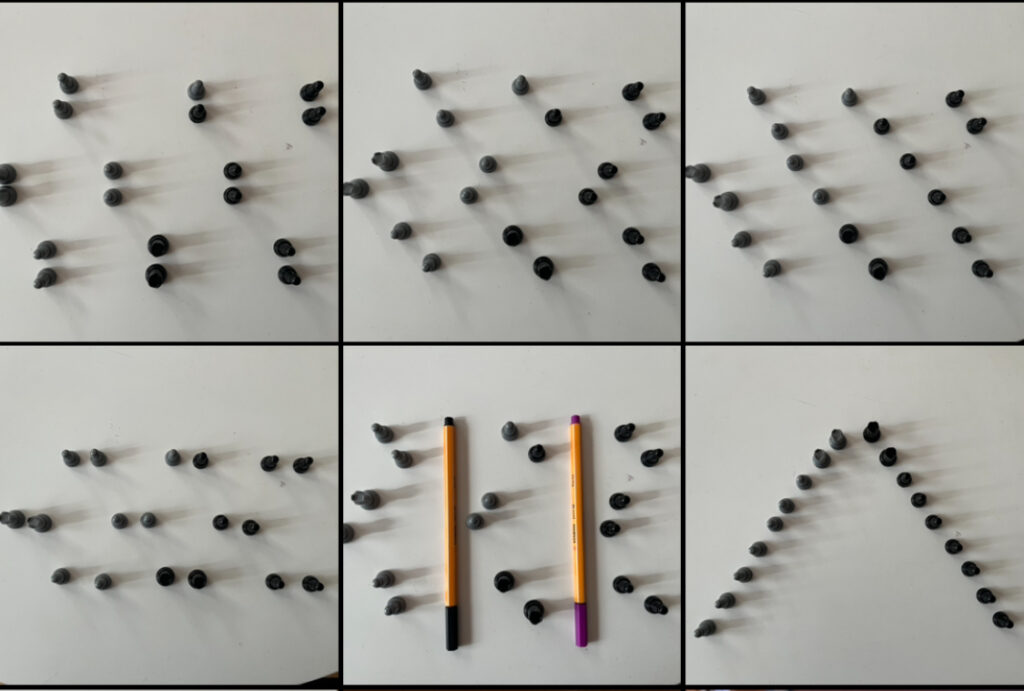 En même temps ou dans les interstices se manifeste cette attention flottante qui me fait voir le monde en métaphore, tels ces arbres repoussés dans des bosquets en lisière des champs comme les cuticules des ongles. Des idées d’images doubles en découlent, dont je me demande comment je pourrais les matérialiser : par des collages ? des dessins ? avec l’IA ? Peut-être n’existeront-elles jamais que comme notes écrites :