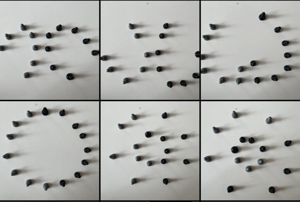 Le soleil fait de grandes ombres aux pièces d’échecs que je place et déplace sur la table basse pour chercher à tâtons des formations qui fonctionnent. Ça ne fonctionne pas toujours, j’avance un peu mes choré, peu.
